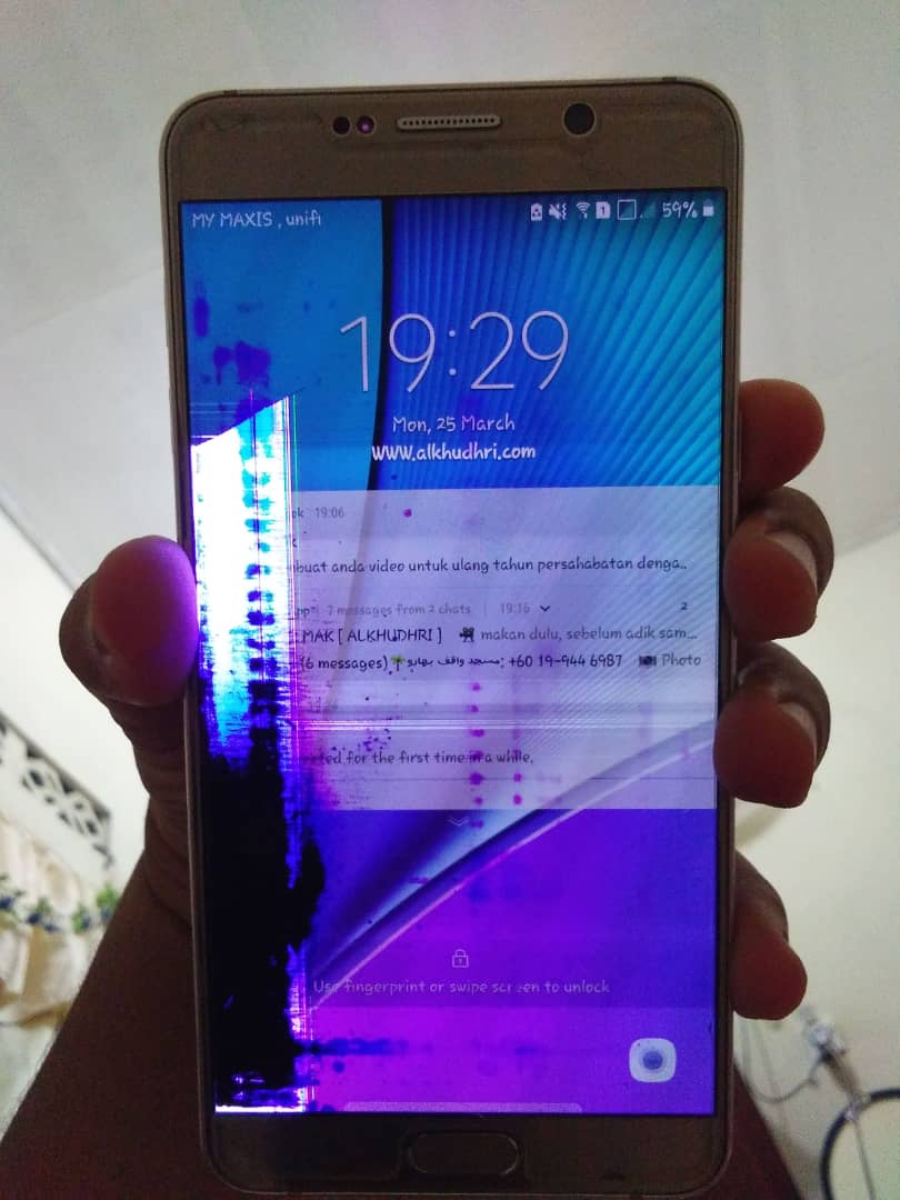 Fix Express Smartphone Repair | Alkisah 25 Mac baru ni, Samsung Note 5 ku jatuh betul-betul skrin menghempap lantai. huhuhu… jadi la skrin Note 5 macam gambar di bawah ni pada asalnya…