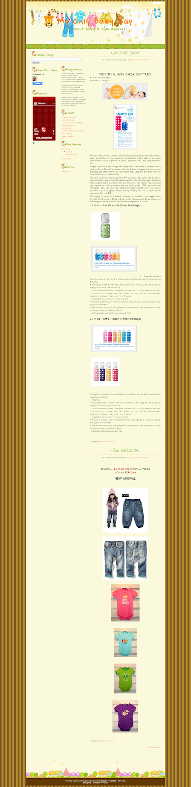 Laman blog milik Noor Syakirah dari Terengganu. Blog yang memasarkan produk-produk dan pakaian bayi dan kanak-kanak.